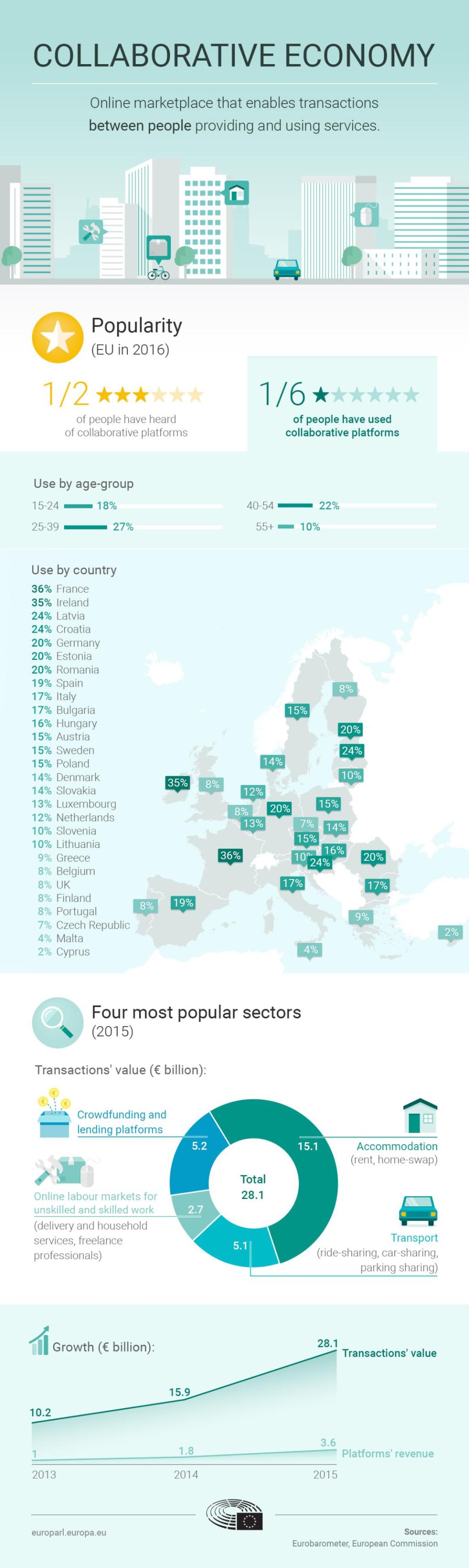 Online platforms such as Airbnb and Deliveroo that match providers of goods and services with consumers have become household names in just a few years. The total transactions’ value for the four main sectors involved in the so-called collaborative economy already reached €28 billion in the EU in 2015, nearly double that of 2014. However, this new business model also comes with challenges and opportunities. In a resolution adopted on 15 June 2017, MEPs said the EU should reap the benefits of the collaborative economy, while ensuring fair competition, workers’ rights and tax compliance.
